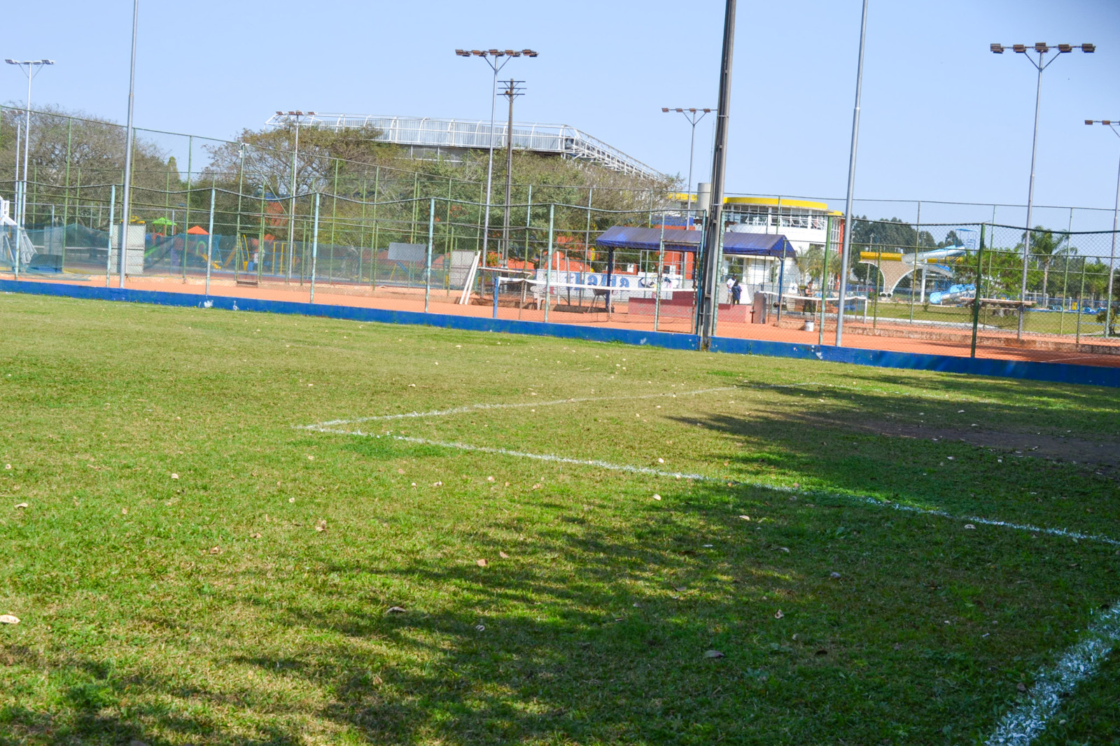 Além do tamanho incrível, este campo possui iluminação, para podermos usufruir do espaço em diferente horário.
