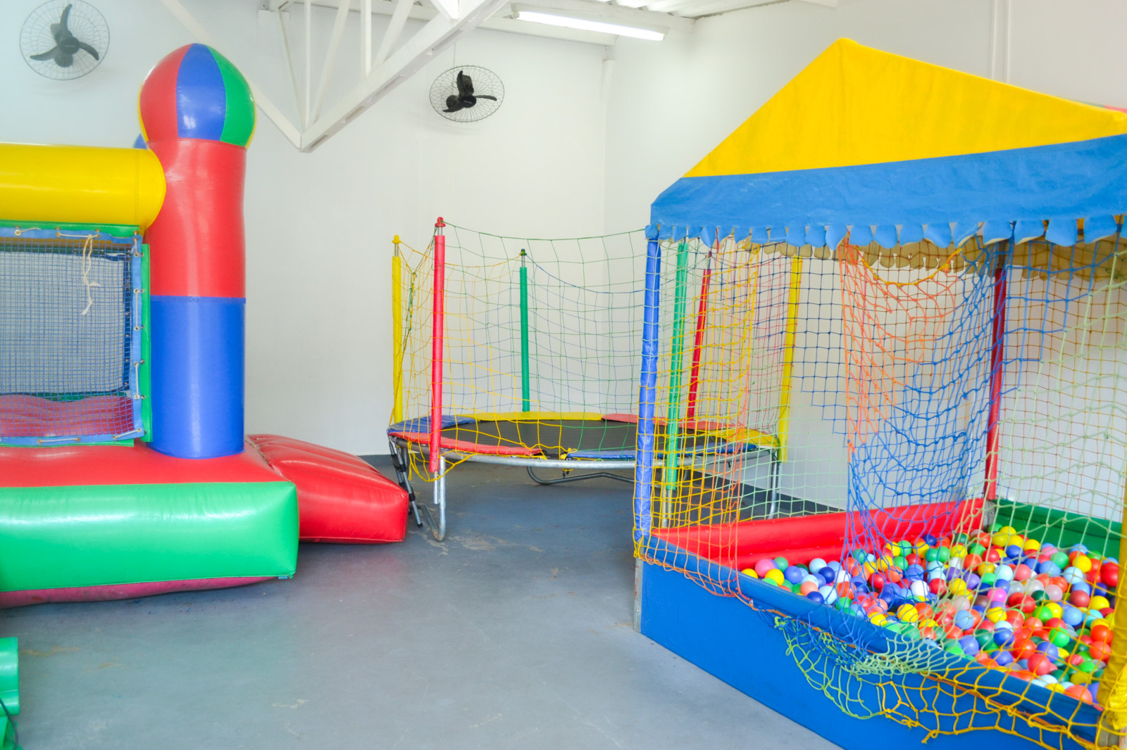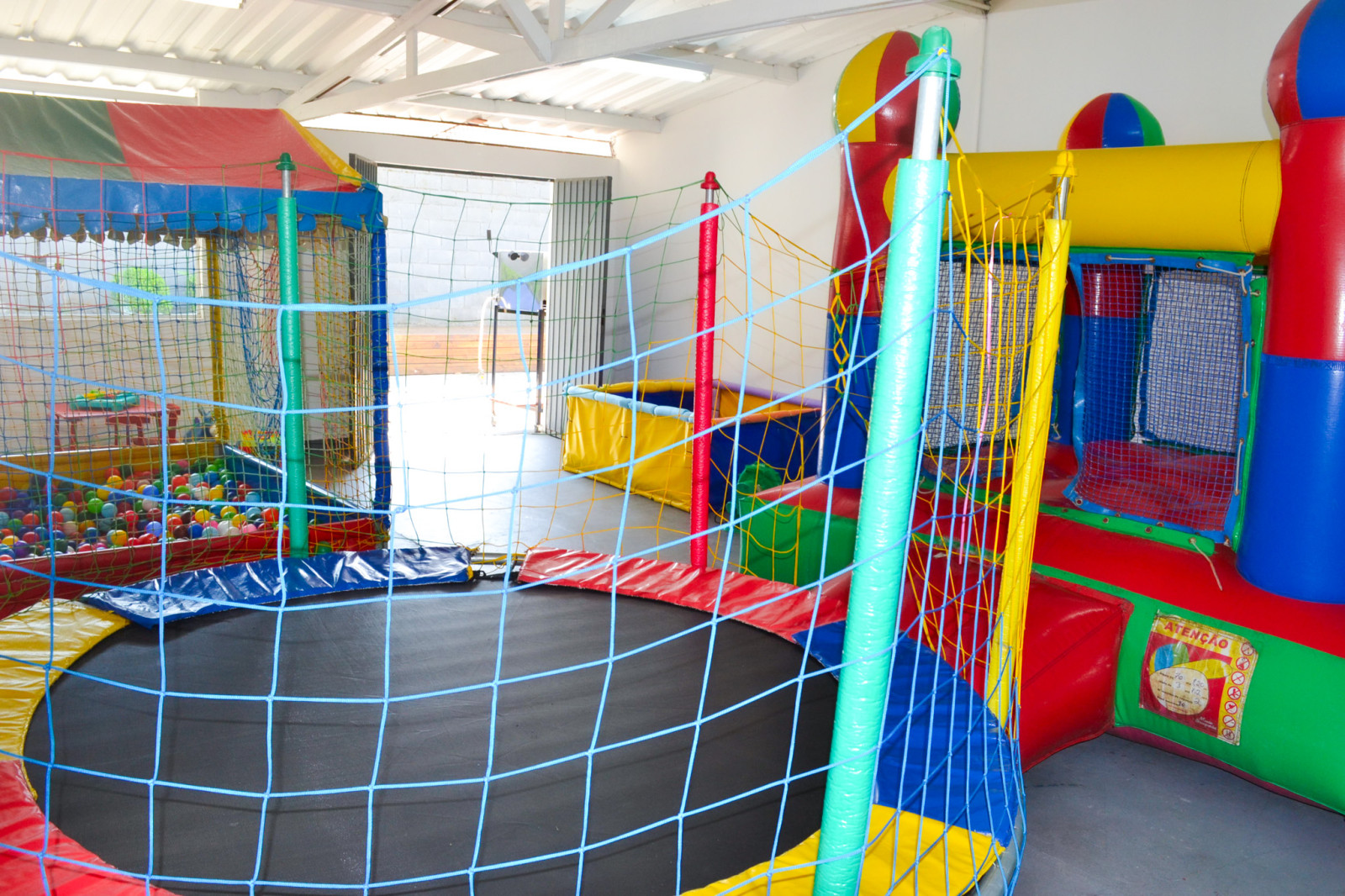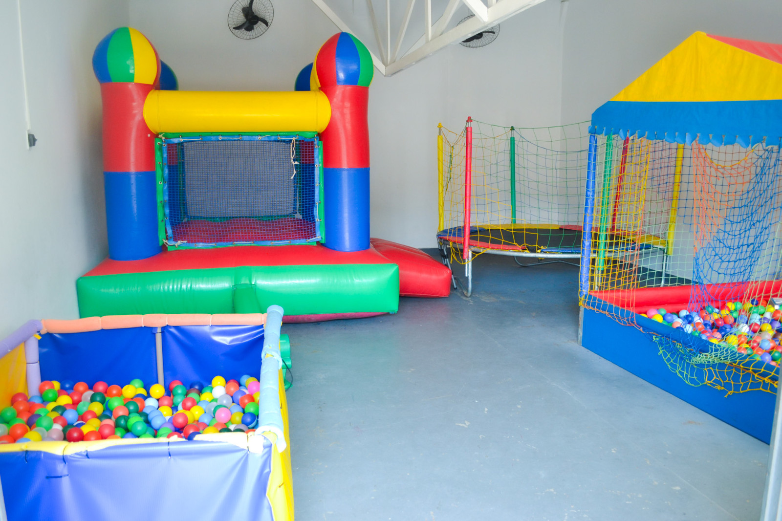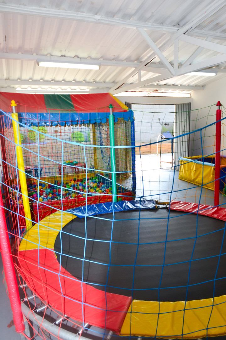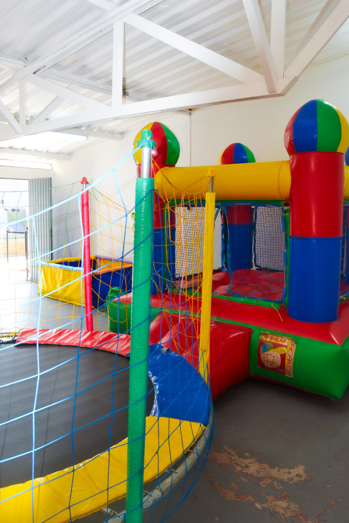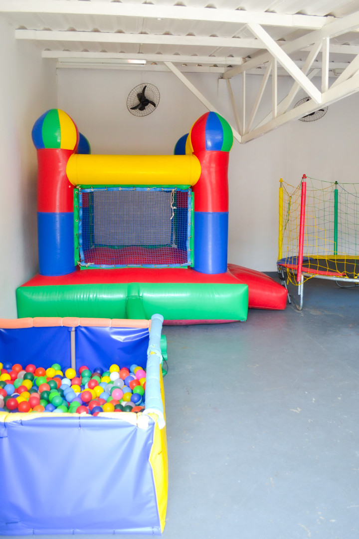Nosso espaço kids conta com, cama elástica, castelo inflável, piscina de bolinhas, mesas, cadeiras, e brinquedos de interação.