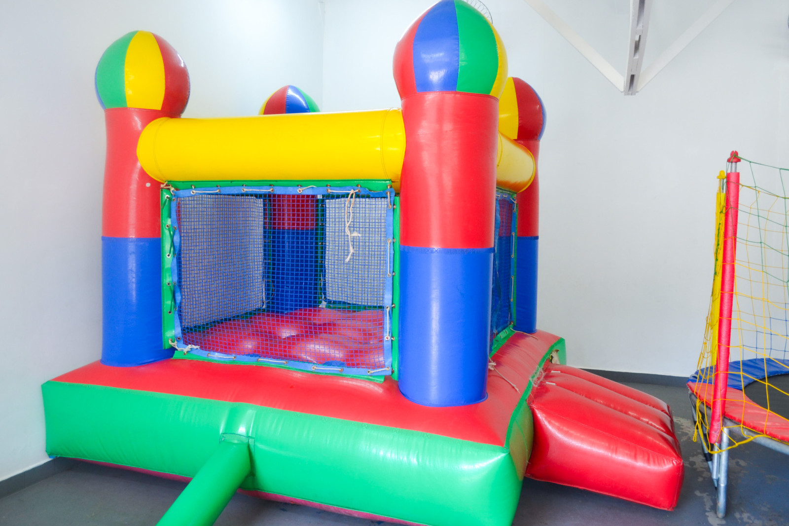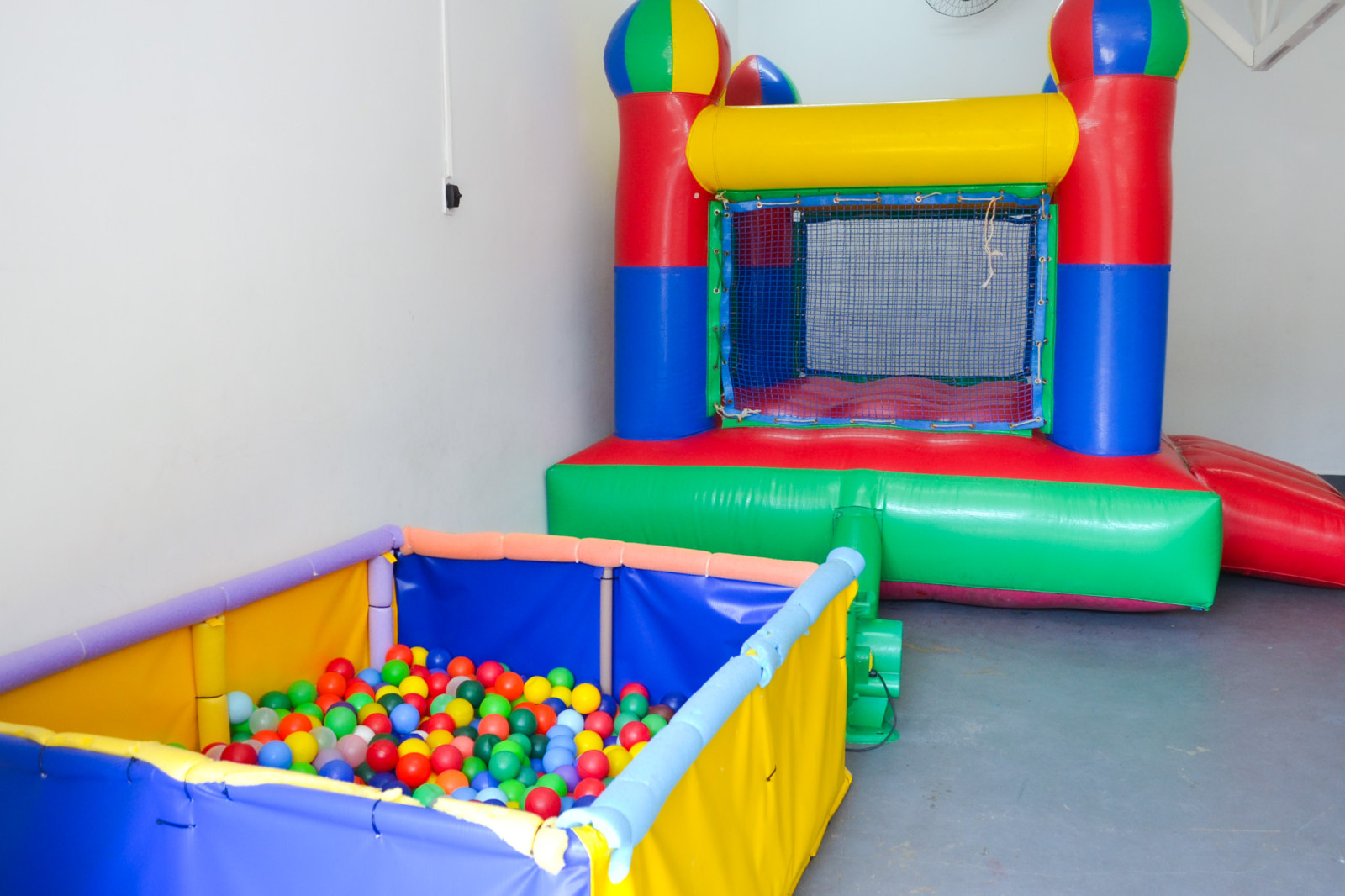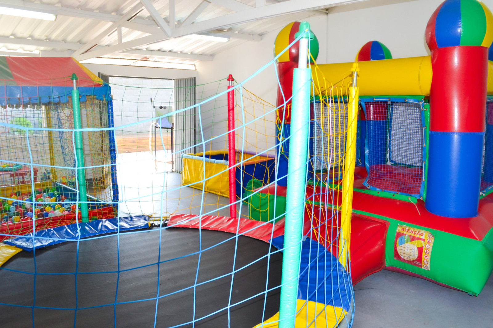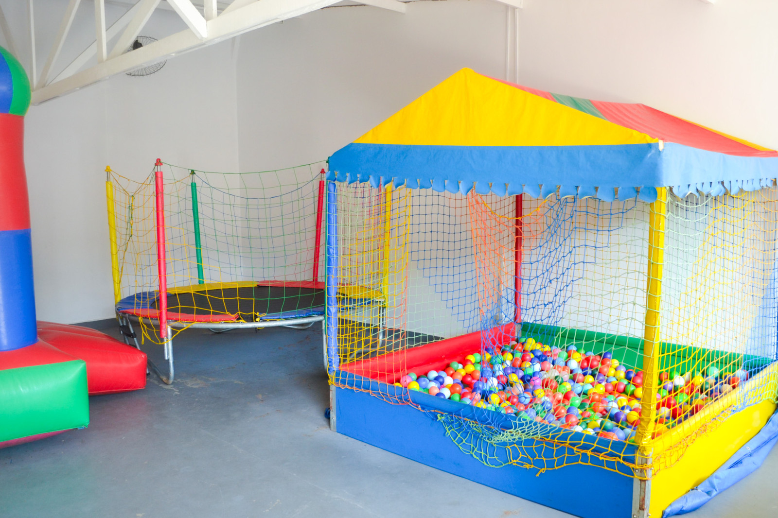 Nosso espaço kids conta com, cama elástica, castelo inflável, piscina de bolinhas, mesas, cadeiras, e brinquedos de interação.