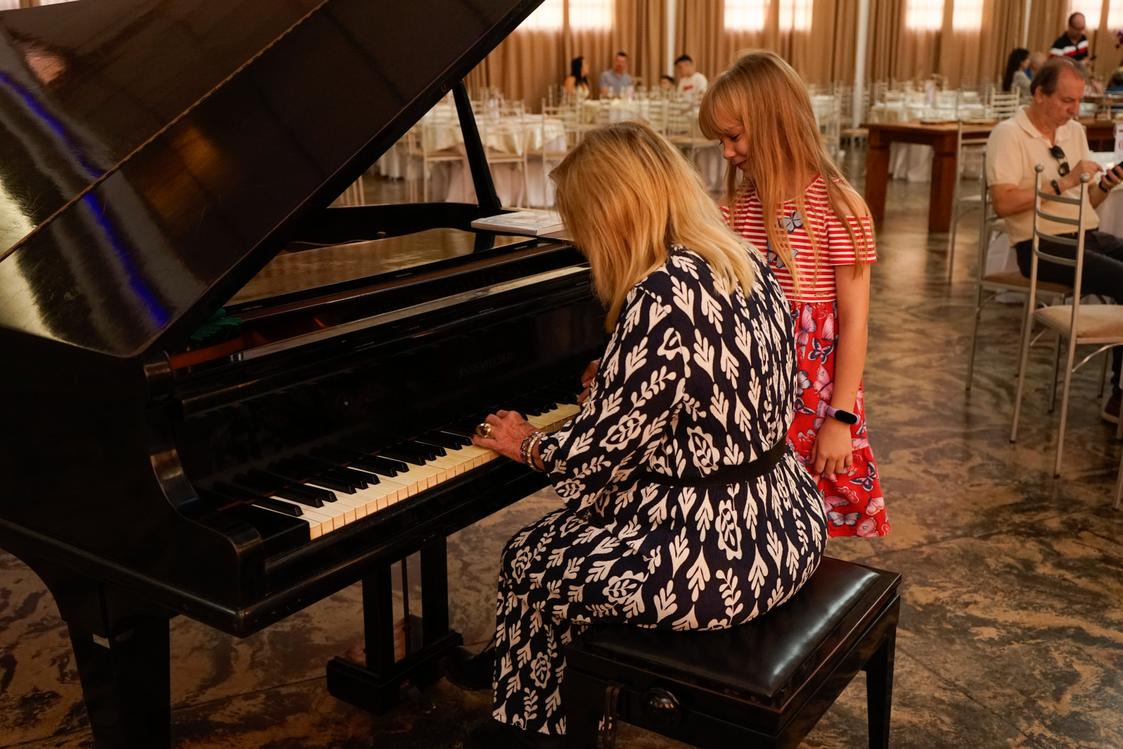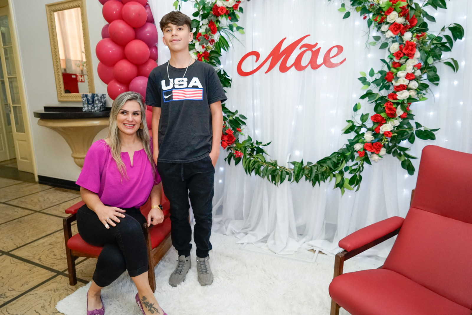 Logo na entrada, as mães foram fotografadas ao lado de seus filhos por Willian Teruo em um lindo painel montador por Theodora Decorações. Os arranjos florais foram carinhosamente montados pela nossa Primeira Dama Mari Schultz, com lindas flores naturais da Florese. O buffet do Restaurante D’Casa preparou um cardápio especial para as mães, recebidas ao som do nosso lindo piano de causa, lindamente tocado pela pianista Lilian Motta Cancian. Durante o almoço, a sonorização ambiente foi realizada pelo DJ Jousé Rozeira.