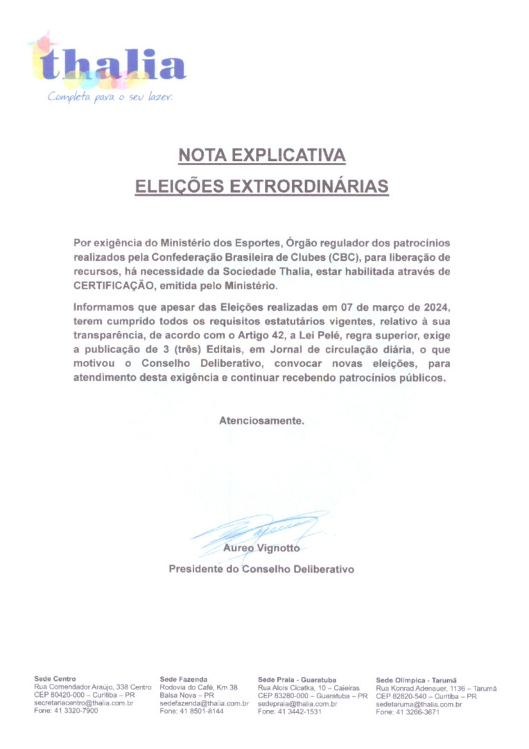 Thalia realizará nova Assembleia Geral Extraordinária!